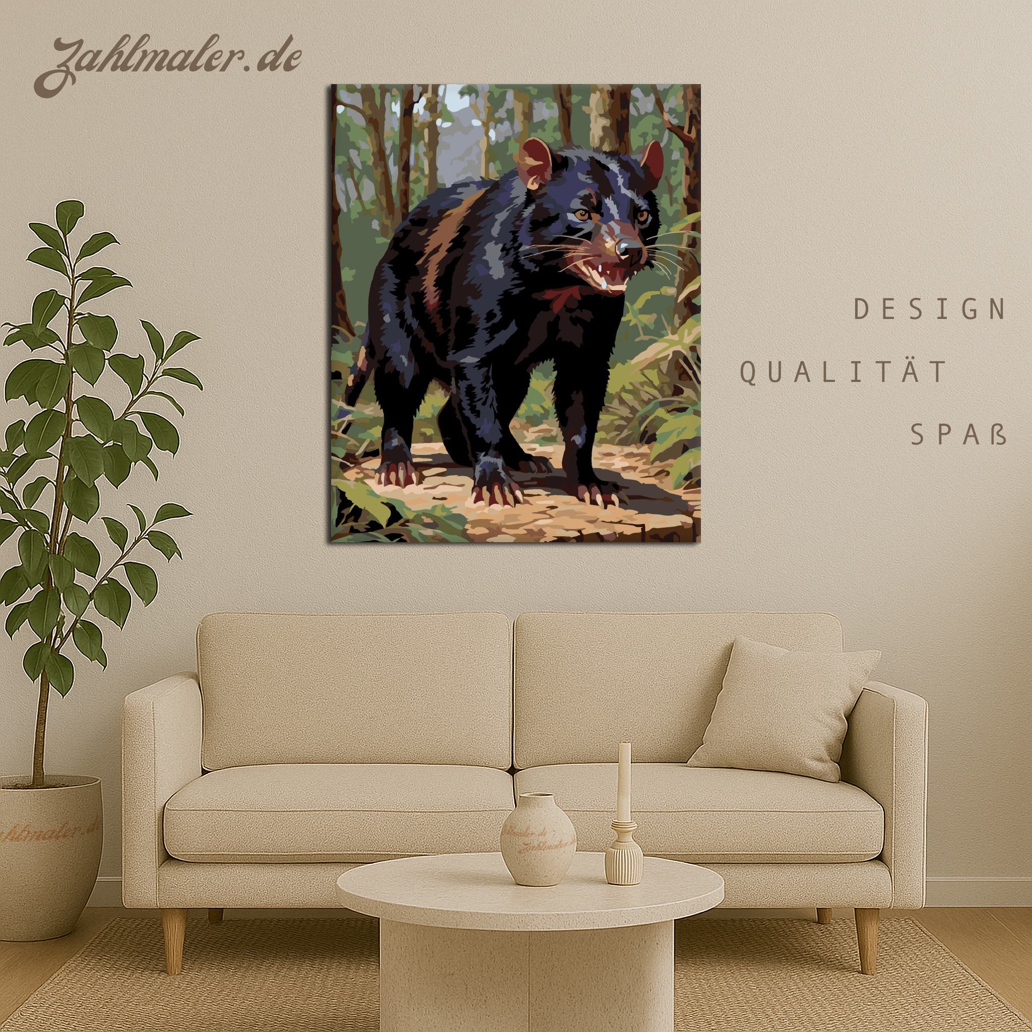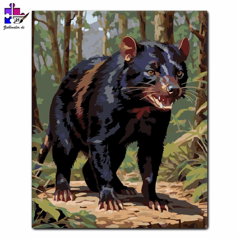Der Tasmanische Teufel im tiefen Wald | Malen nach Zahlen
