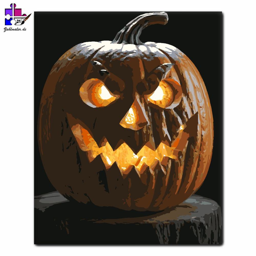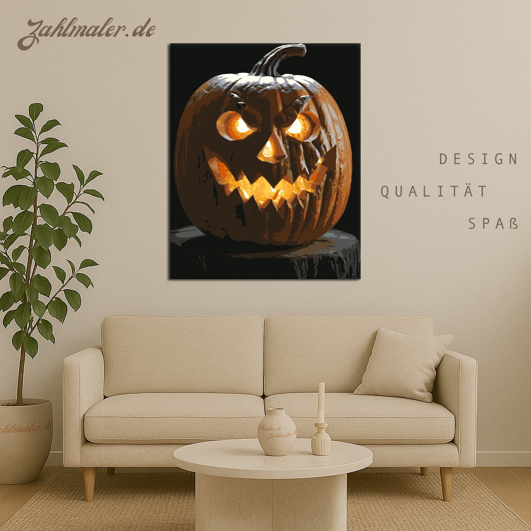 Furchterregend geschnitzte Kürbislaterne | Malen nach Zahlen