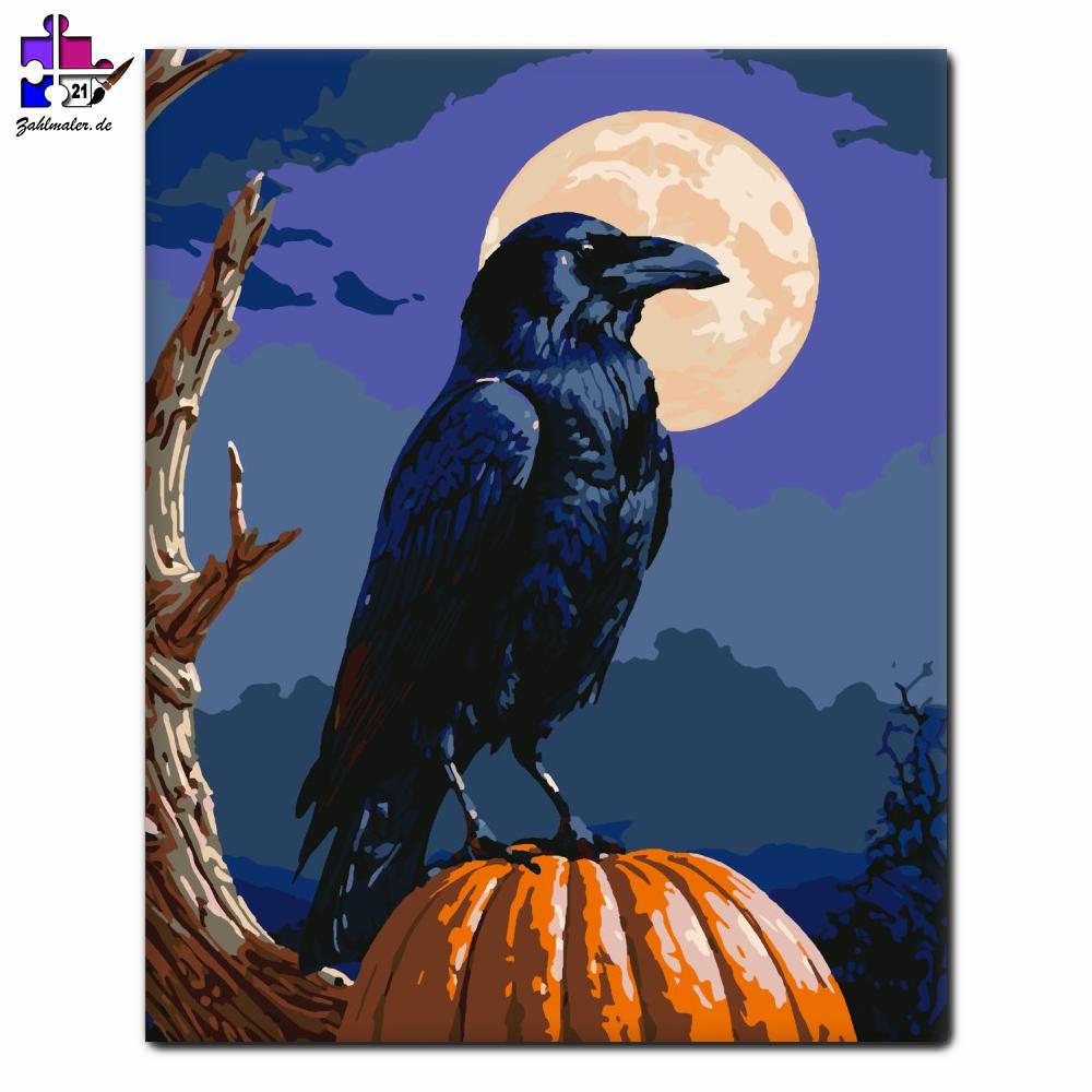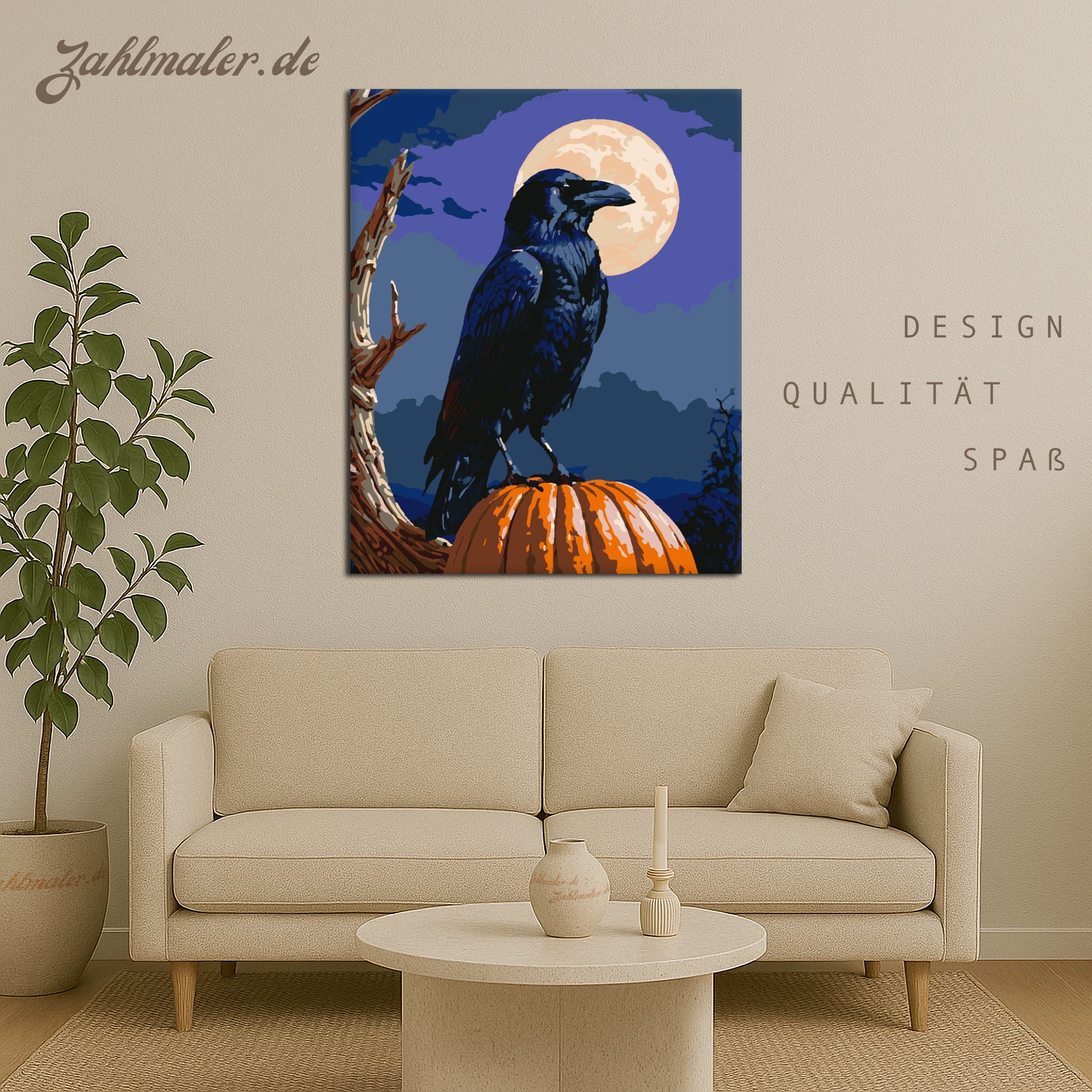 Rabe und Kürbis im Mondlicht | Malen nach Zahlen