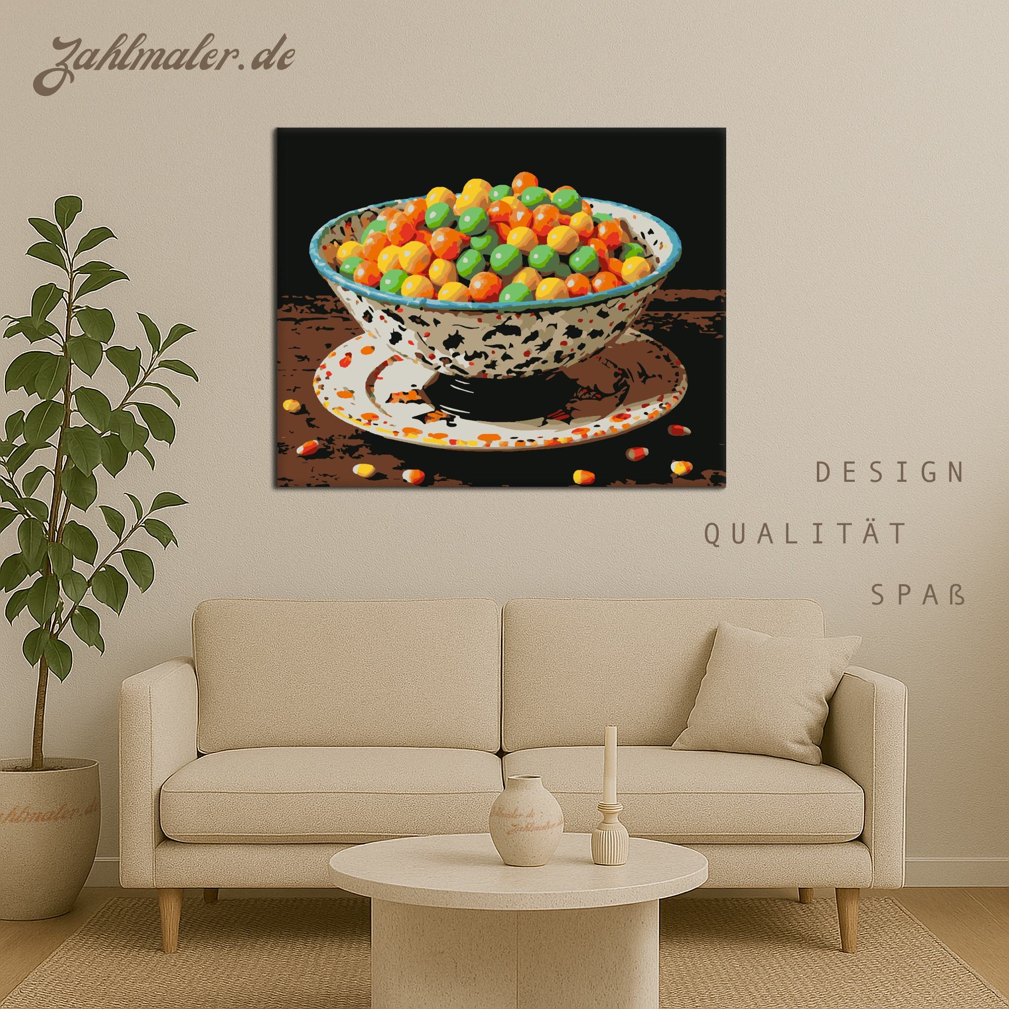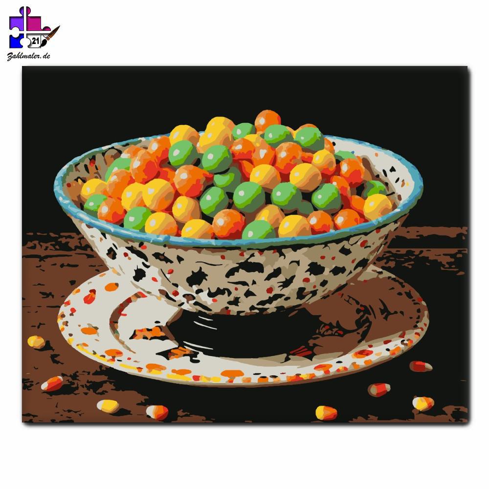 Süßigkeiten-Faust in der Halloween-Schale | Malen nach Zahlen